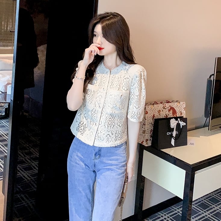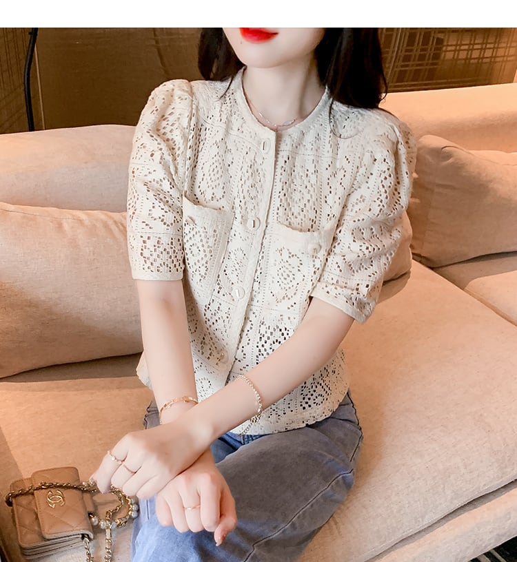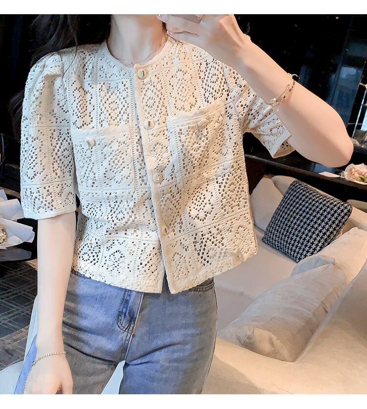 トップス ブラウス ショート丈 半袖 ノーカラー 襟なし かぎ編み クロシェ クルーネック 花柄 襟なし 総レース 切り替えデザイン 薄手 かわいい 大人可愛い 大人 上品 おしゃれ お洒落 大人可愛い 大人女子 こなれ感 キュート ガーリー 存在感 抜け感 無地 春 夏 10代 20代 30代 レディース 女性用 通勤 学生 通学 デート お出かけ 休日 リゾート 旅行 オフホワイト S M L XL 2XL
