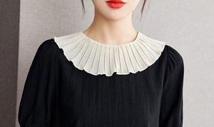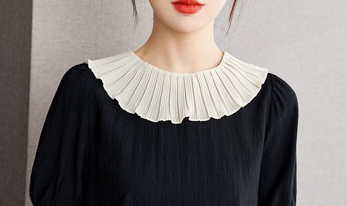 プリーツ入りのアコーディオン襟がガーリーなパフスリーブブラウス。