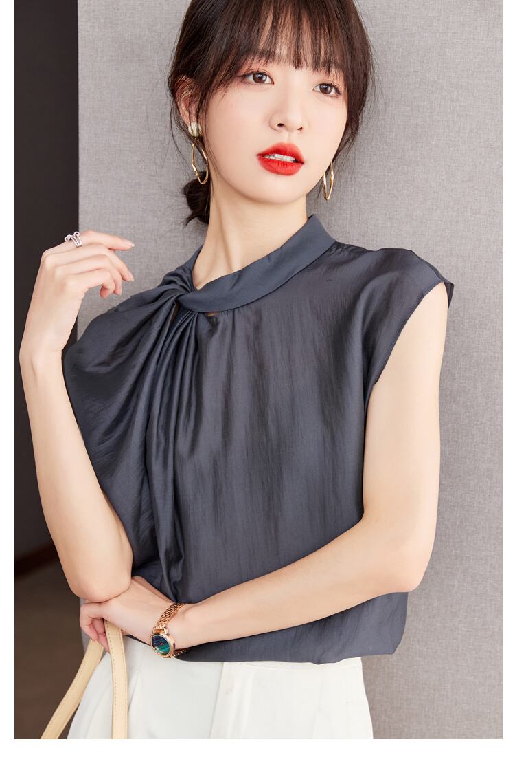 トップス デート シャツ ブラウス カットソー 袖あり 半袖 フレンチスリーブ バックジップ アシンメトリー フレア スタンドカラー ノット ギャザー かわいい 大人可愛い きれいめ シンプル カジュアル 大人 上品 おしゃれ お洒落 主役級 存在感 春 夏 10代 20代 レディース 女性用 OL 学生 デート お出かけ 公園デビュー 女子会 お泊まり 休日 旅行 着回し 普段使い ファッション コーデ 楽ちん トレンド 流行 インスタ映え S M L XL グレー