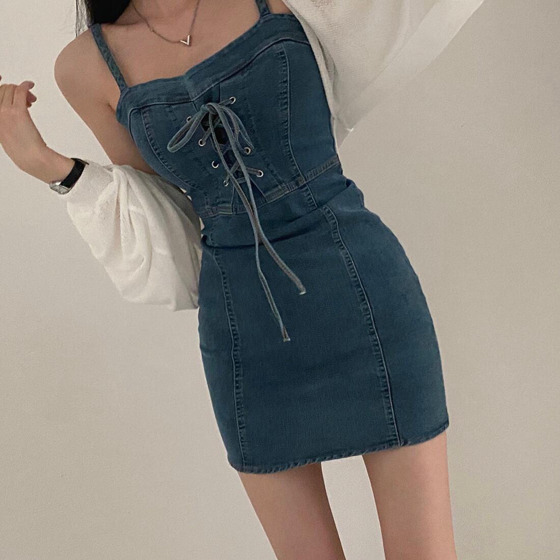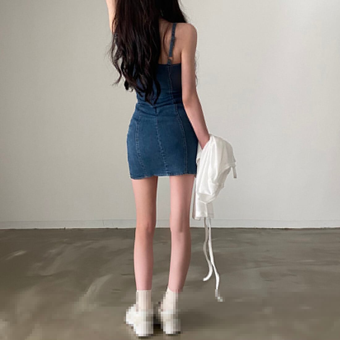 デニムで仕立てたカジュアルかつセクシーなキャミワンピです