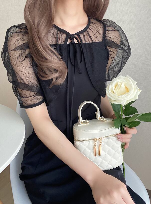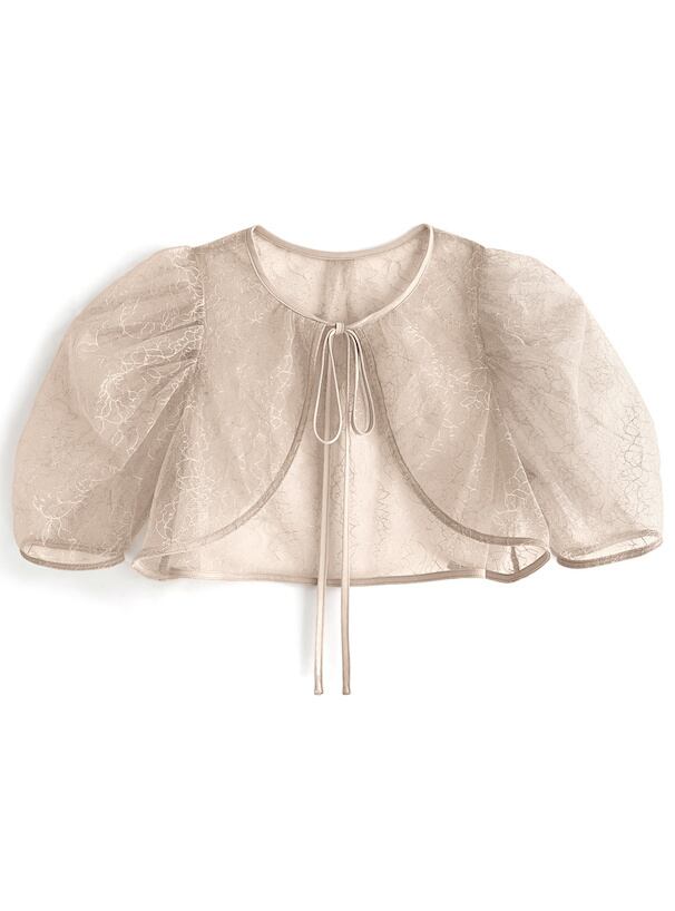 ふんわりパフスリーブと繊細な花柄が上品なシアーボレロが便利です。