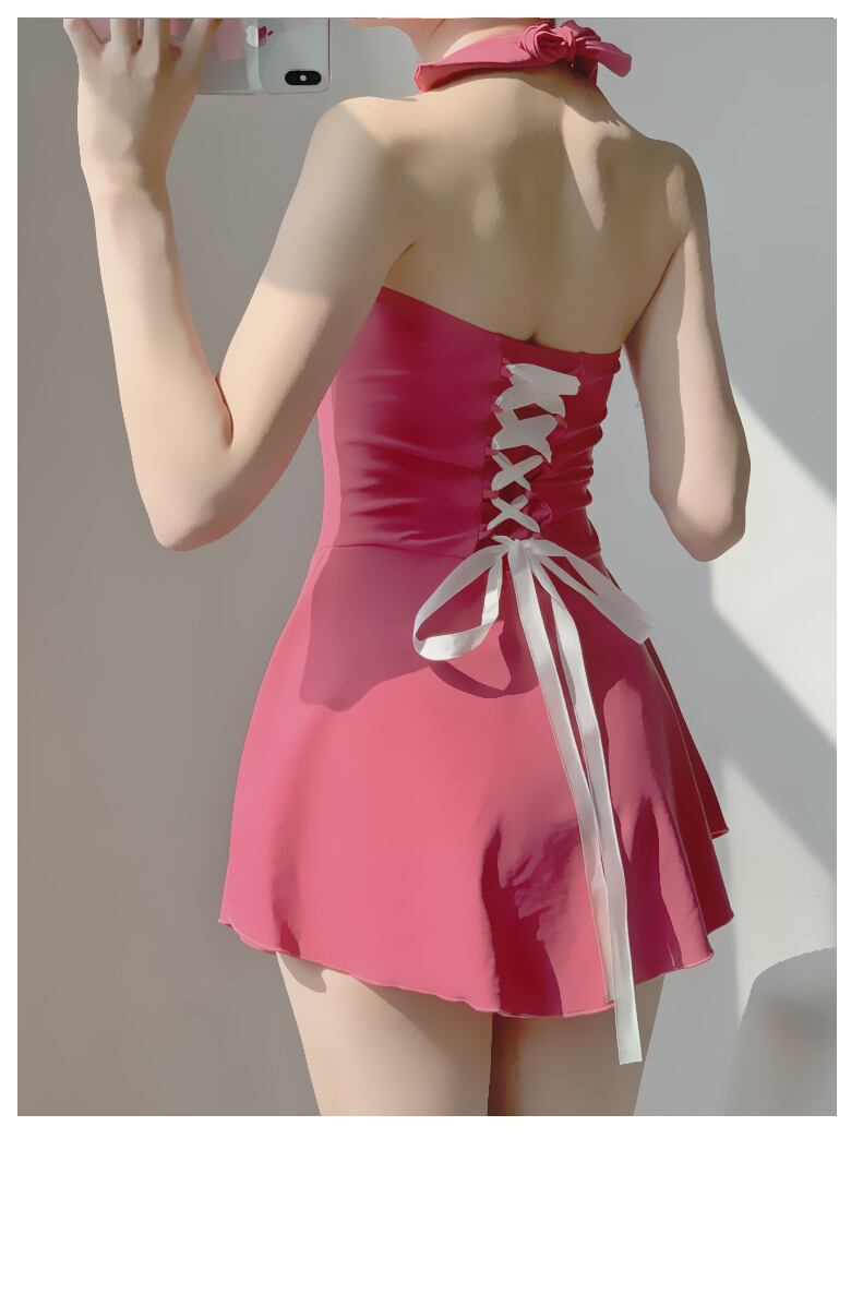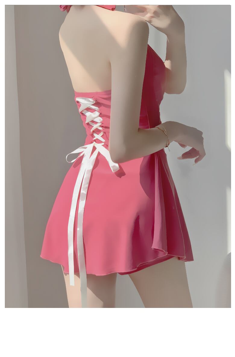 広めのVネックがデコルテをセクシーに見せて、バックのレースアップが大人可愛いデザイン。