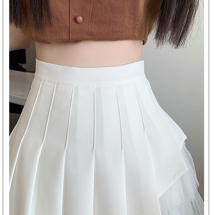 スカート ボトムス ショート丈 膝上 Aライン チュール 切り替え アシンメトリー 変形 タック ボックスプリーツ ハイウエスト 大人可愛い シンプル カジュアル お洒落 レトロ ラブリー キュート ガーリー 無地 秋 冬 誕生日 10代 20代 30代 女性用 ママ OL 通勤 学生 通学 デート お出かけ 女子会 お泊まり 休日 イベント リゾート 旅行 ホテル レストラン ショッピング コーデ 暖かい モテ 美脚 脚長 ギフト 安い 韓国風 S M L ブラック ホワイト