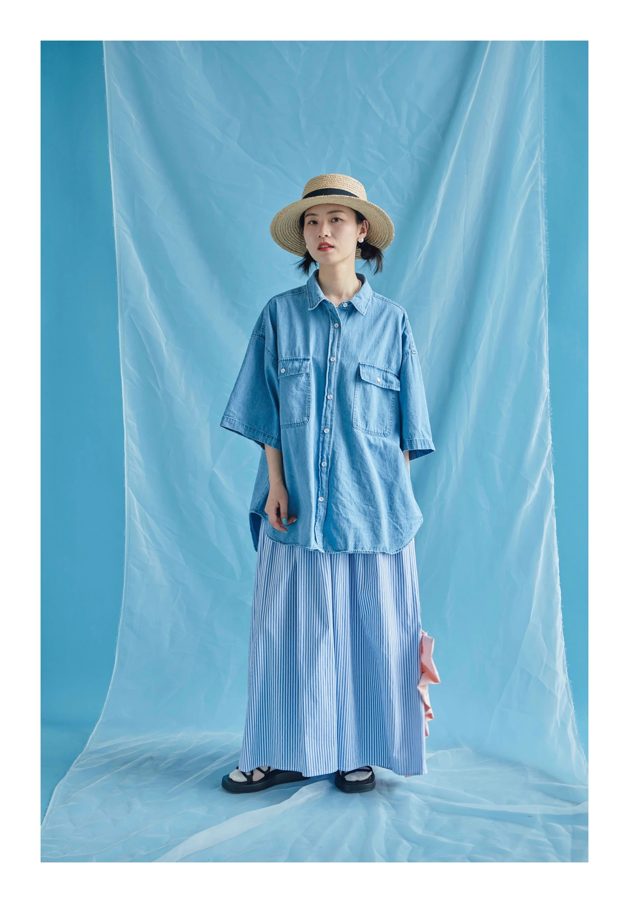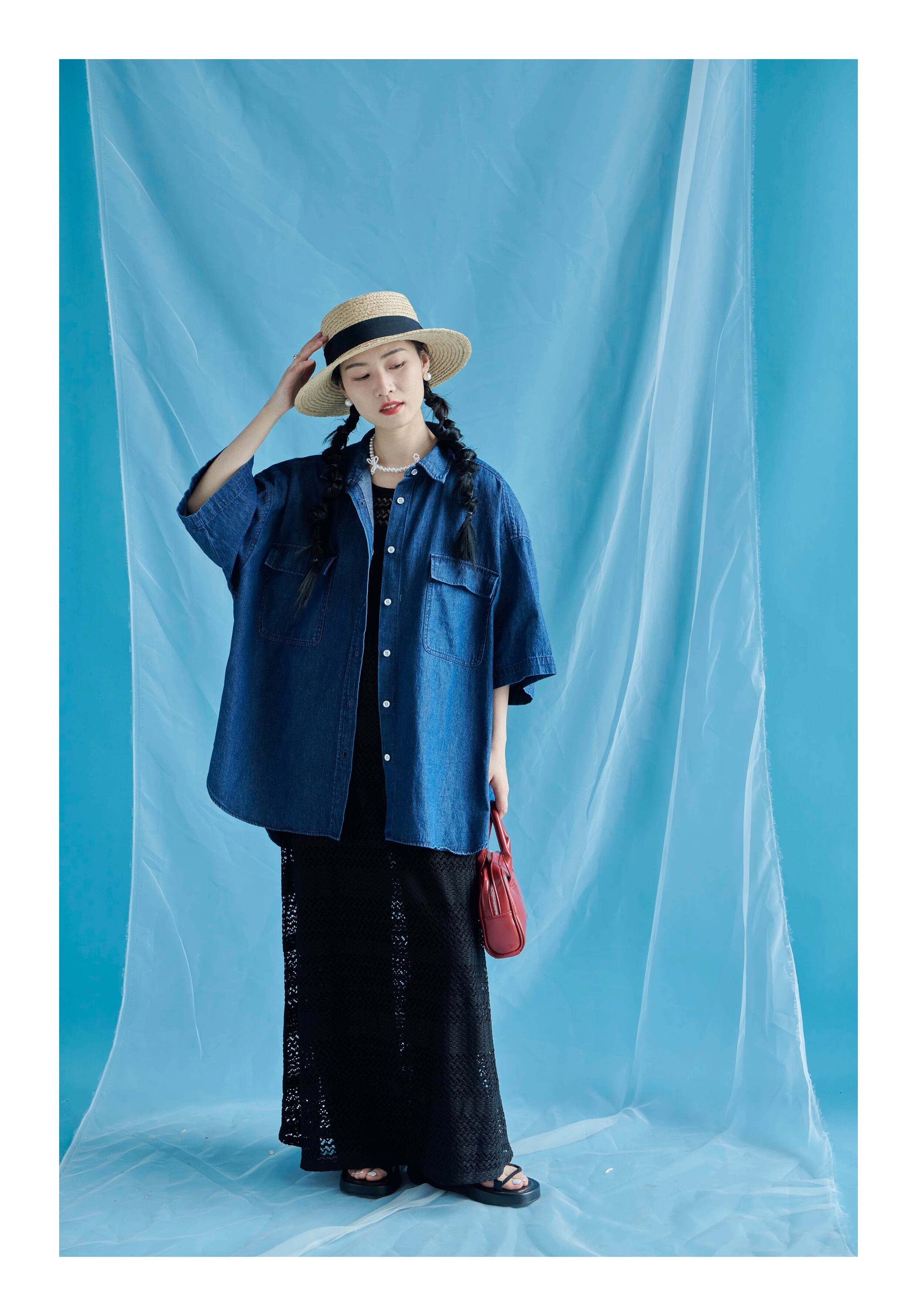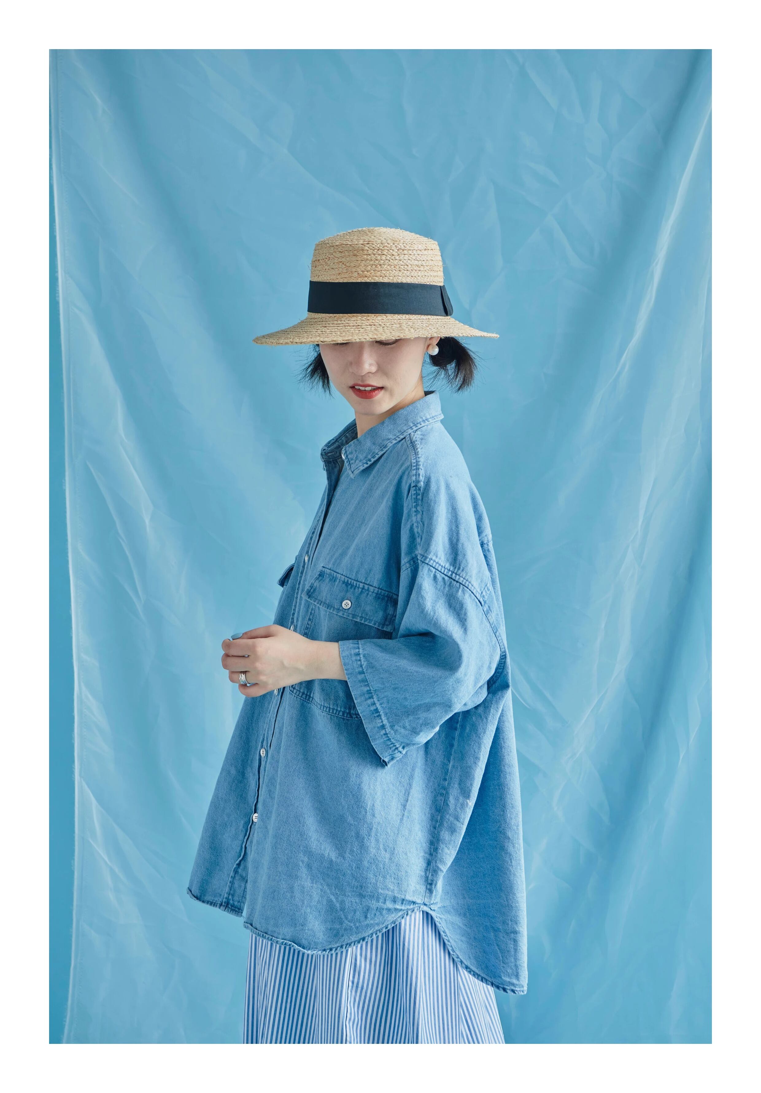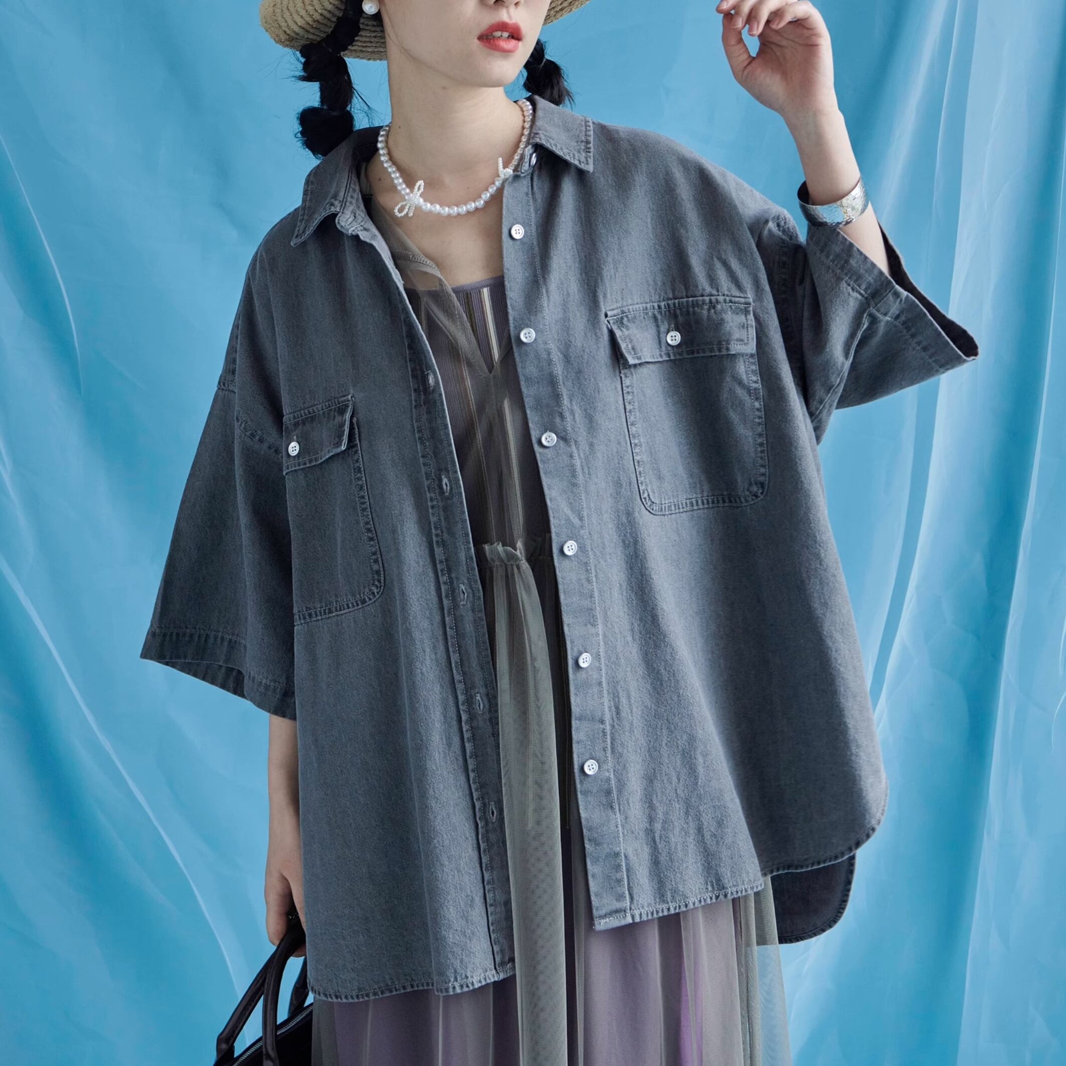 トップス シャツ ブラウス 袖あり 半袖 五分袖 デニム 前開き オーバーサイズ ドロップショルダー かわいい 大人可愛い きれいめ シンプル カジュアル 大人 上品 おしゃれ お洒落 主役級 存在感 春 秋 10代 20代 30代 レディース 女性用 OL 学生 デート お出かけ 公園デビュー 女子会 休日 イベント 旅行 着回し 普段使い ファッション コーデ 楽ちん モテ トレンド 流行 インスタ映え M L ゆったり ゆる グレー ネイビー ライトブルー