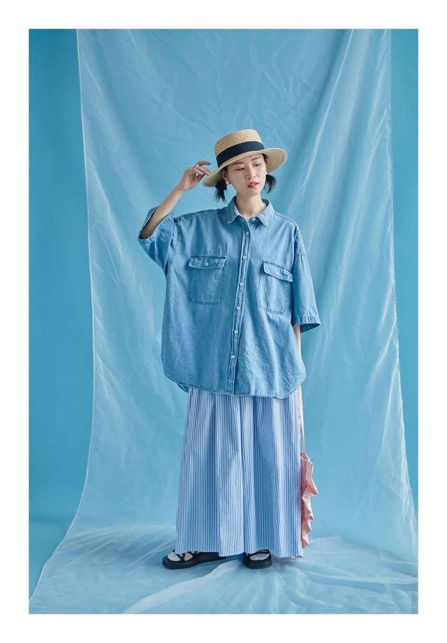 ゆるっと着用できるオーバーサイズのデニムシャツです。