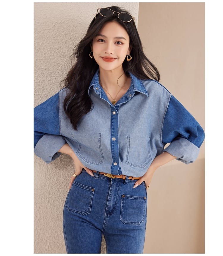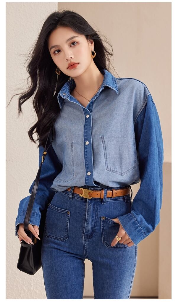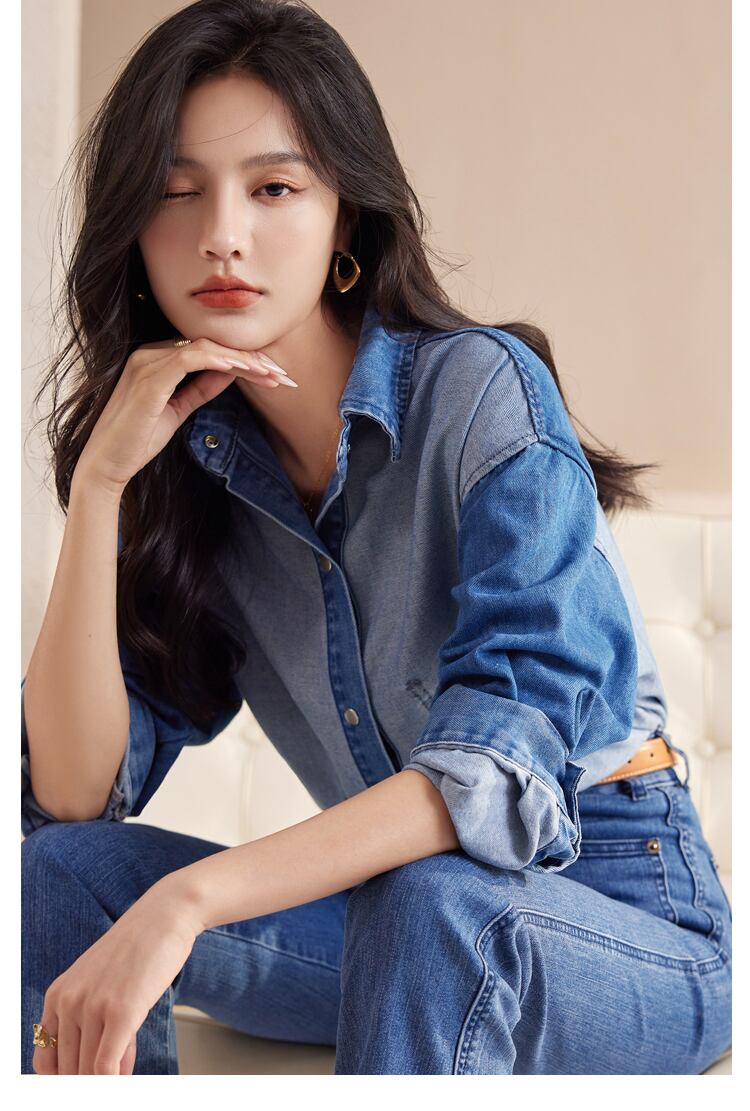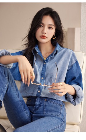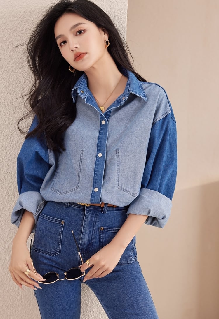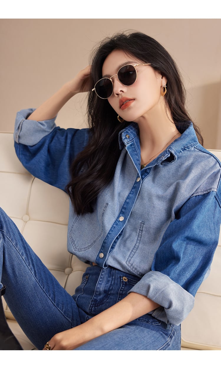 トップス シャツ ブラウス 袖あり 長袖 デニム 前開き オーバーサイズ ステッチ ドロップショルダー バイカラー ツートーン ラウンドヘム かわいい 大人可愛い きれいめ シンプル カジュアル 大人 上品 おしゃれ お洒落 主役級 存在感 春 秋 10代 20代 30代 レディース 女性用 OL 学生 デート お出かけ 公園デビュー 女子会 休日 イベント 旅行 着回し 普段使い ファッション コーデ 楽ちん モテ トレンド 流行 インスタ映え ゆったり ゆる ブルー