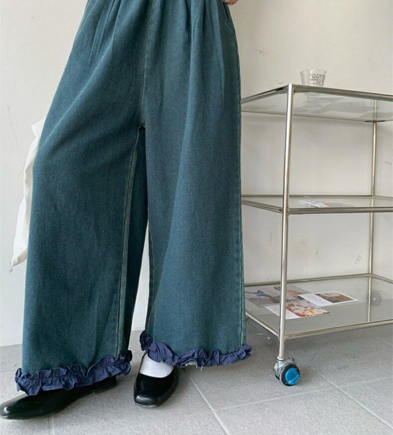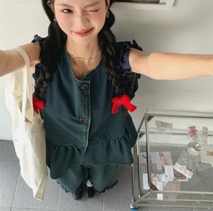 袖周りと裾周りのフリルがフェミニンでカジュアルなデニムにガーリー要素をプラス。