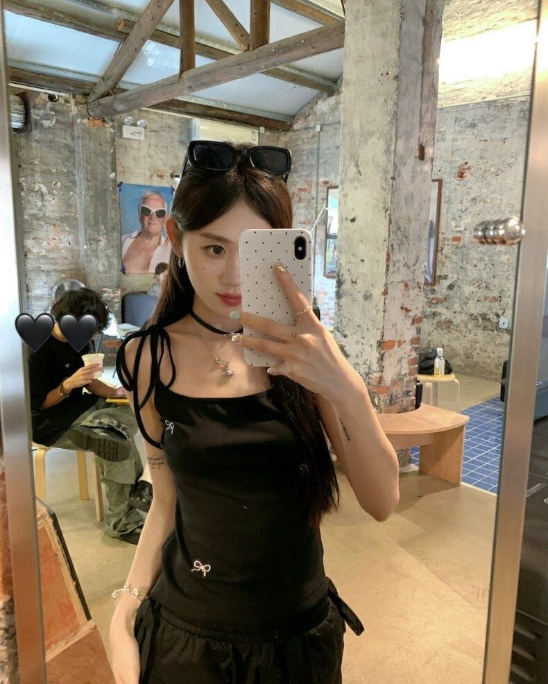 リボン刺繍を散りばめたハンサムなカーゴパンツとキャミソールのラフセットアップ。