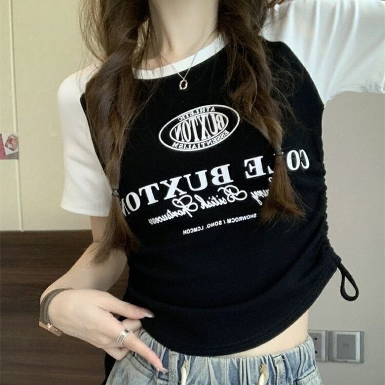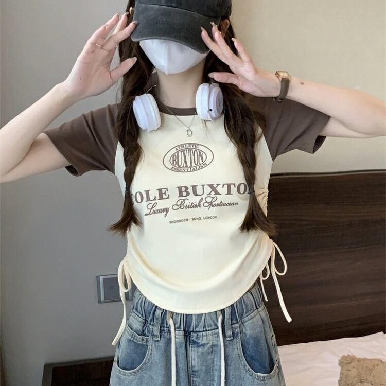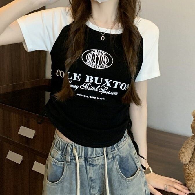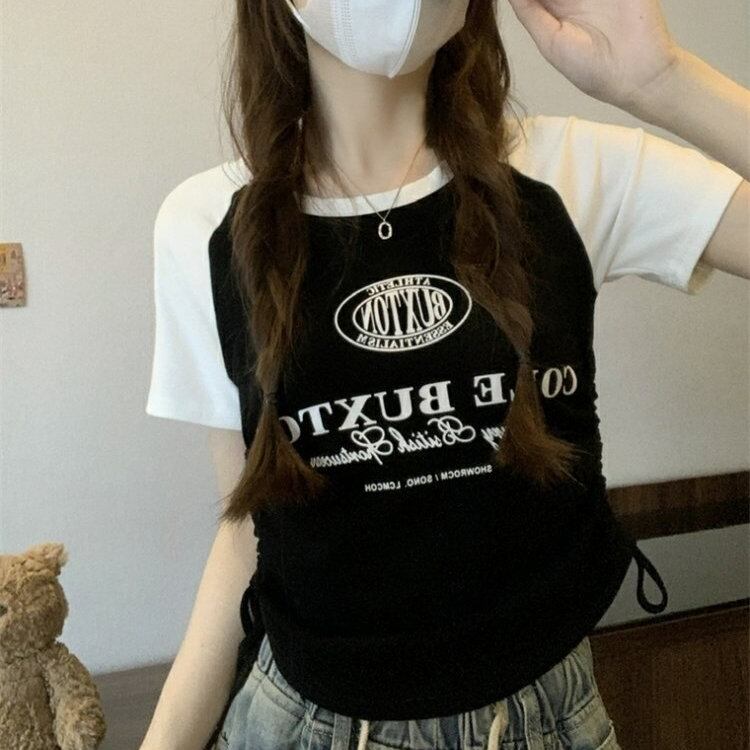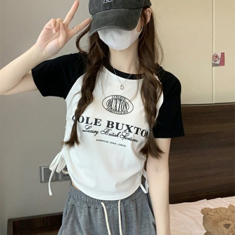 トップス Tシャツ カットソー 袖あり 半袖 細身 タイト ラグラン クルーネック ロゴ アメカジ レタリング ドローストリング プリント 伸縮性 きれいめ シンプル カジュアル クラシカル 大人 おしゃれ お洒落 大人可愛い 大人女子 こなれ感 無地 春 夏 10代 20代 30代 40代 レディース 女性用 オフィス OL 通勤 学生 通学 デート お出かけ お泊まり 休日 アウトドア 旅行 着回し 普段使い S M L XL ブラック ホワイト ベージュ アプリコット