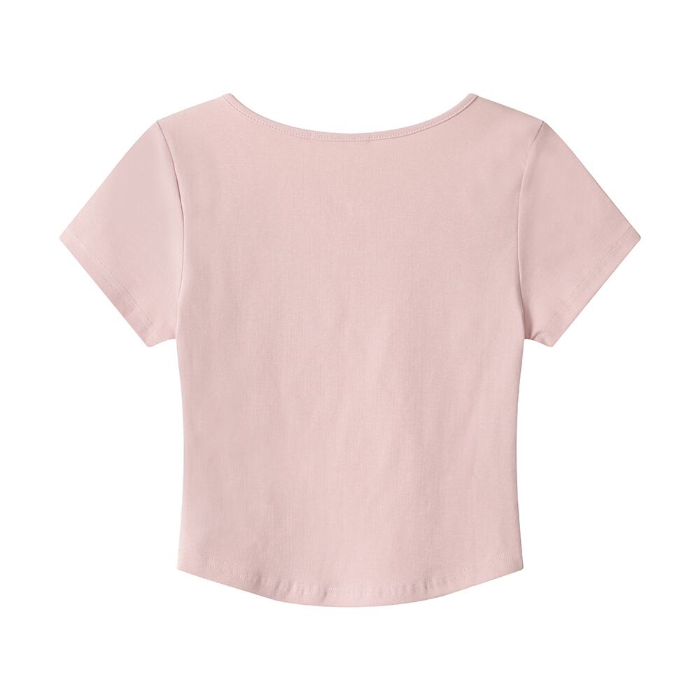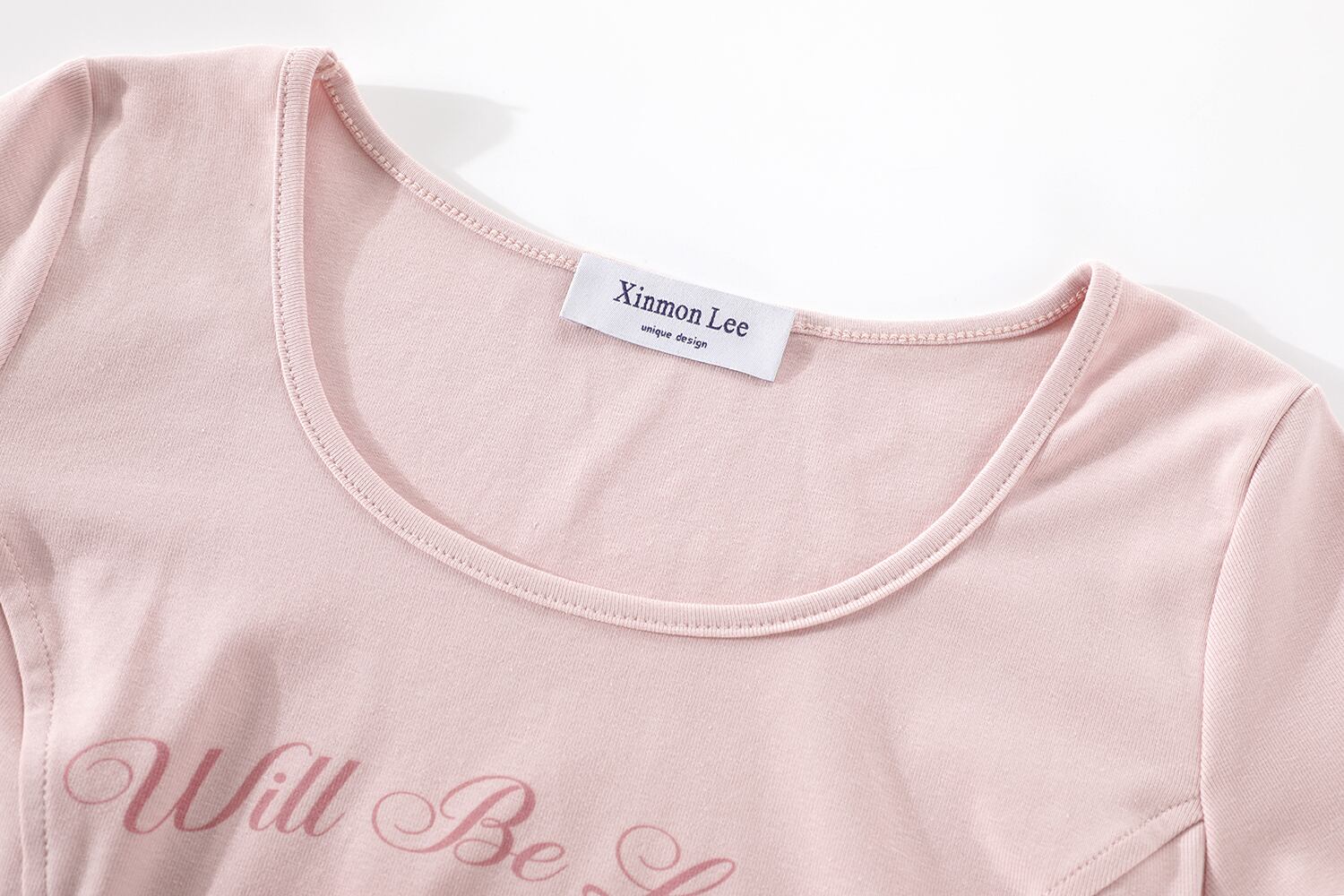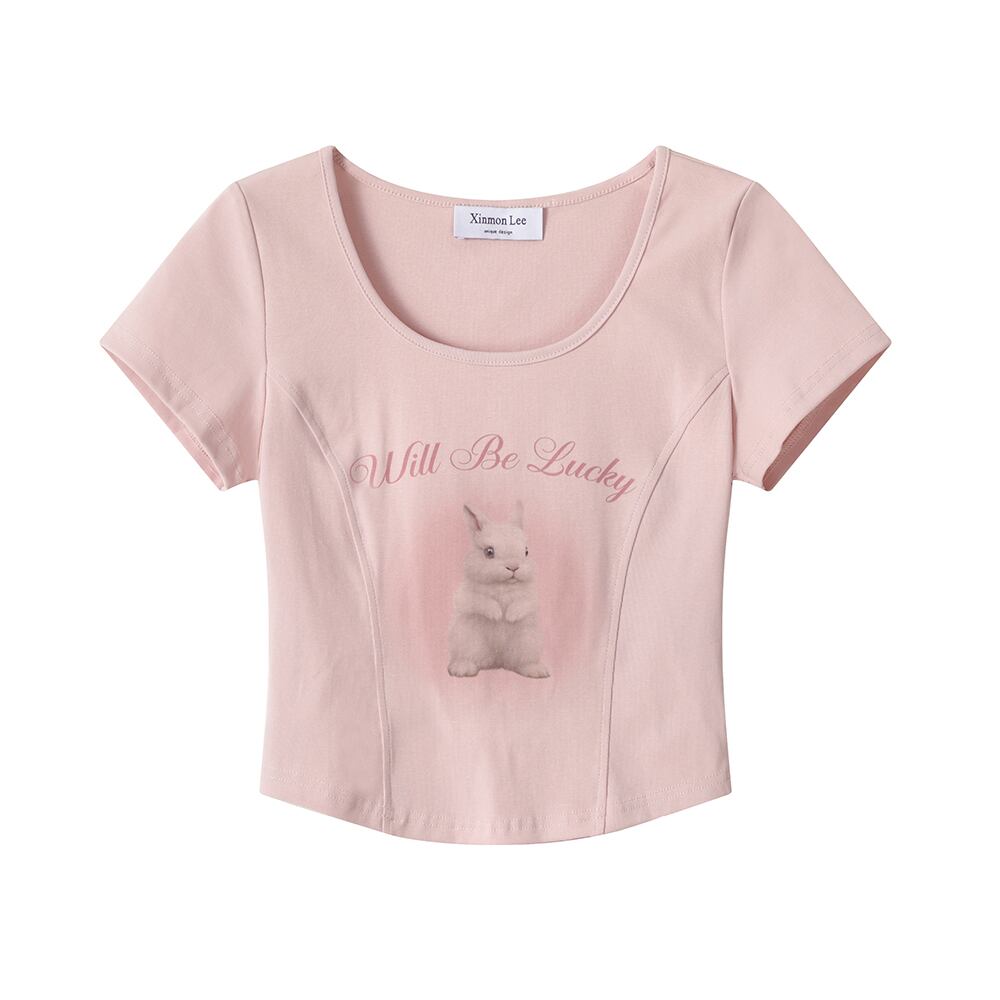 トップス Tシャツ カットソー 袖あり 半袖 細身 タイト ショート丈 ラウンドネック 切り替え ロゴ レタリング うさぎ 夢かわいい プリント 伸縮性 きれいめ シンプル カジュアル クラシカル 大人 おしゃれ お洒落 大人可愛い 大人女子 こなれ感 無地 春 夏 10代 20代 30代 40代 レディース 女性用 オフィス OL 通勤 学生 通学 デート お出かけ お泊まり 休日 アウトドア 旅行 着回し 普段使い ピンク ワンサイズ