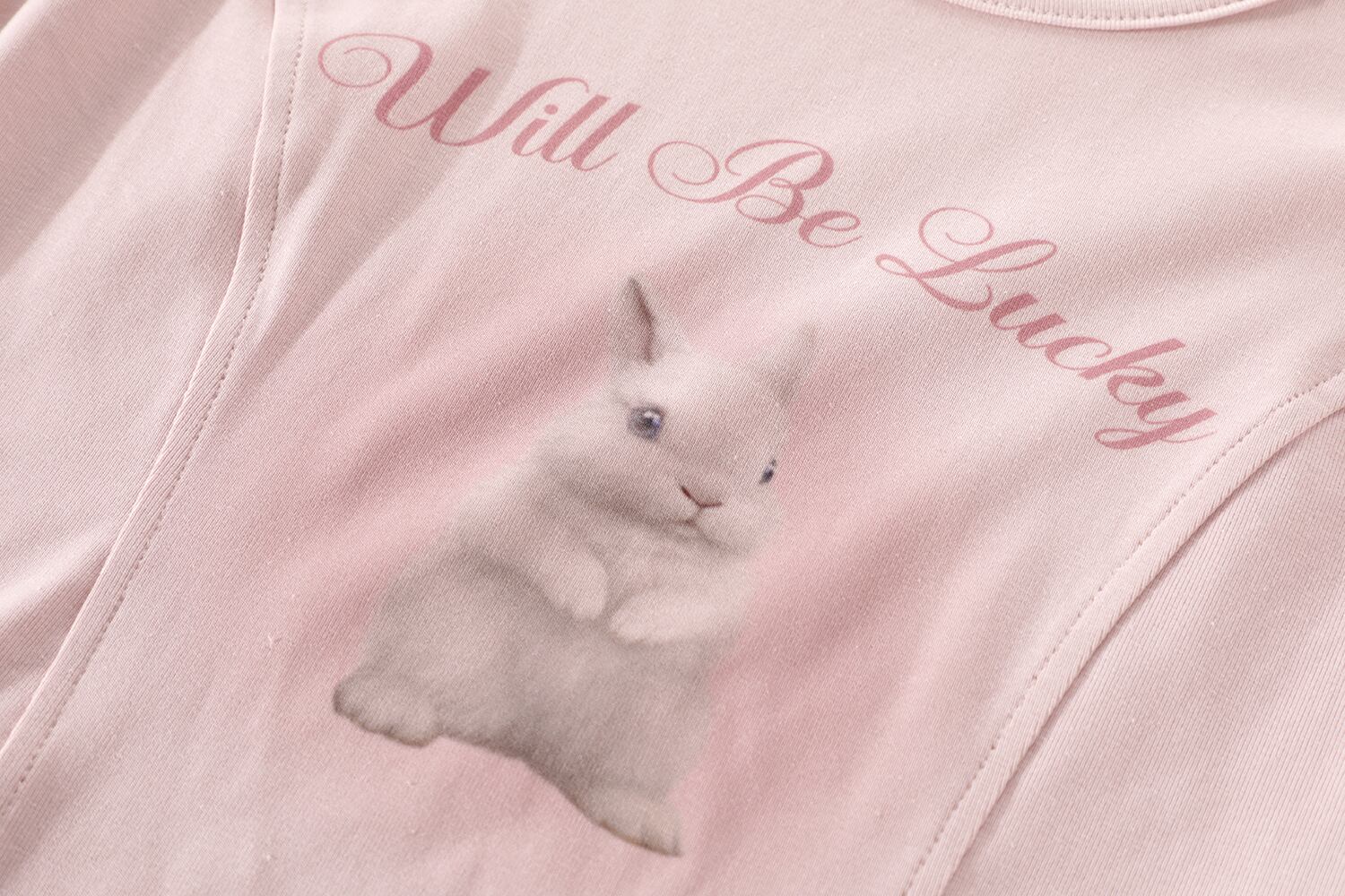 淡いうさぎとレタリングのプリントが可愛い半袖カットソー。