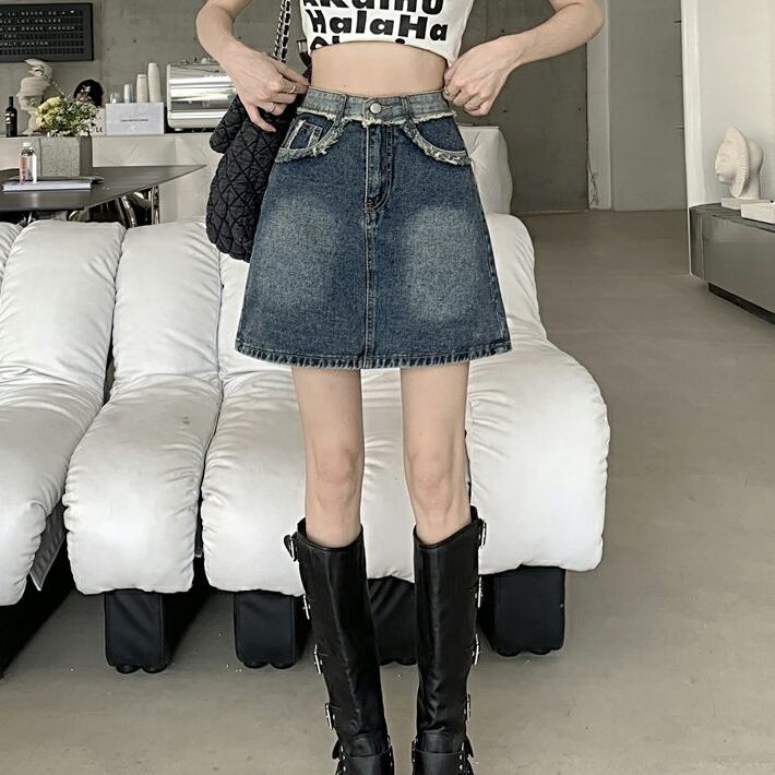トレンド 韓国風 オルチャン スカート デニム ミニ丈 スカート ショート丈 ミニスカ カットオフ フリンジ バイカラー 切り替え ヴィンテージ風 色褪せ かわいい 大人可愛い きれいめ シンプル カジュアル 大人 上品 おしゃれ お洒落 かっこいい レトロ 大人女子 こなれ感 ラフ ガーリー モード系 モダン 爽やか さわやか 無地 S M L XL サイズ展開 大きいサイズ 春 夏 秋 冬 シーズンレス オールシーズン デート お出かけ 女子会 休日 着回し 普段使い お揃い 定番カラー ブルー