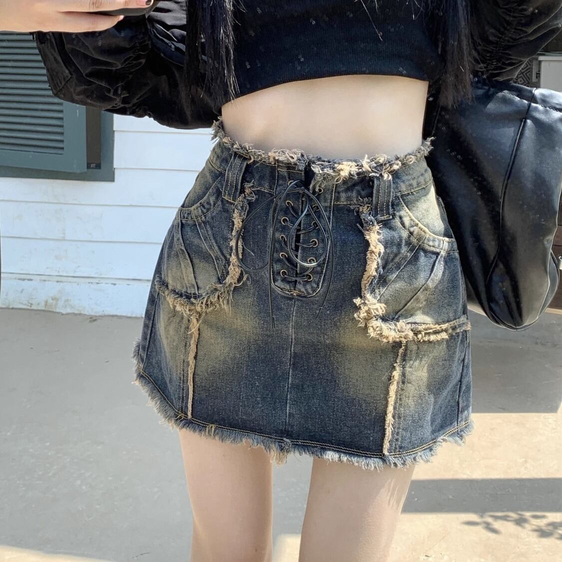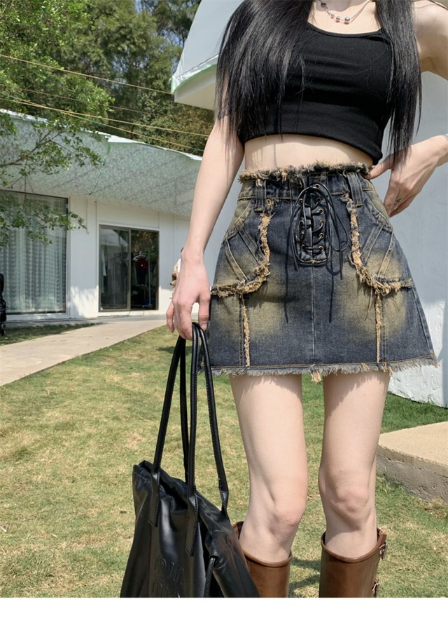 スカート デニム ミニ丈 スカート トレンド 韓国風 ショート丈 ミニスカ カットオフ フリンジ バイカラー レースアップ リボン 切り替え ヴィンテージ風 色褪せ かわいい 大人可愛い きれいめ シンプル カジュアル 大人 上品 おしゃれ お洒落 かっこいい レトロ 大人女子 こなれ感 ラフ ガーリー モード系 モダン 爽やか さわやか 無地 S M L XL 春 夏 秋 冬 シーズンレス オールシーズン デート お出かけ 女子会 休日 着回し 普段使い お揃い 定番カラー ブルー