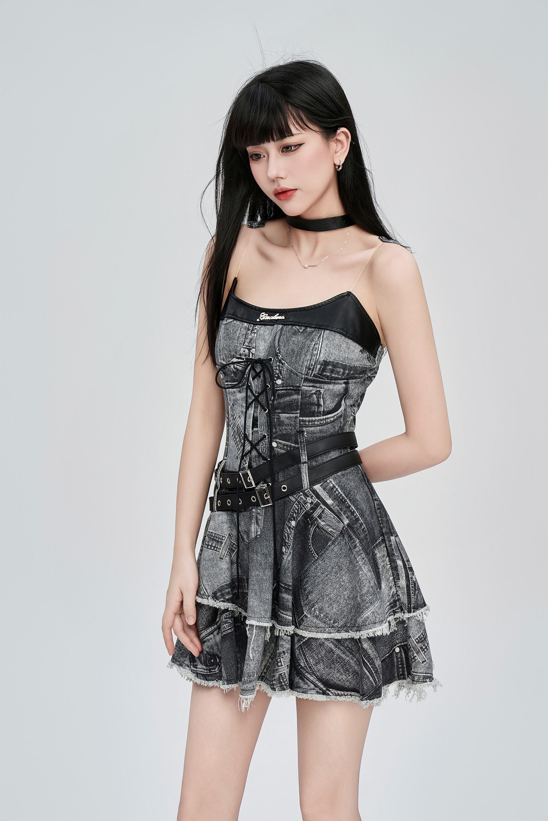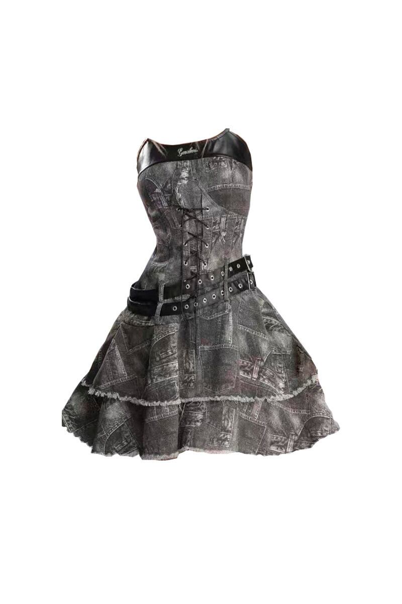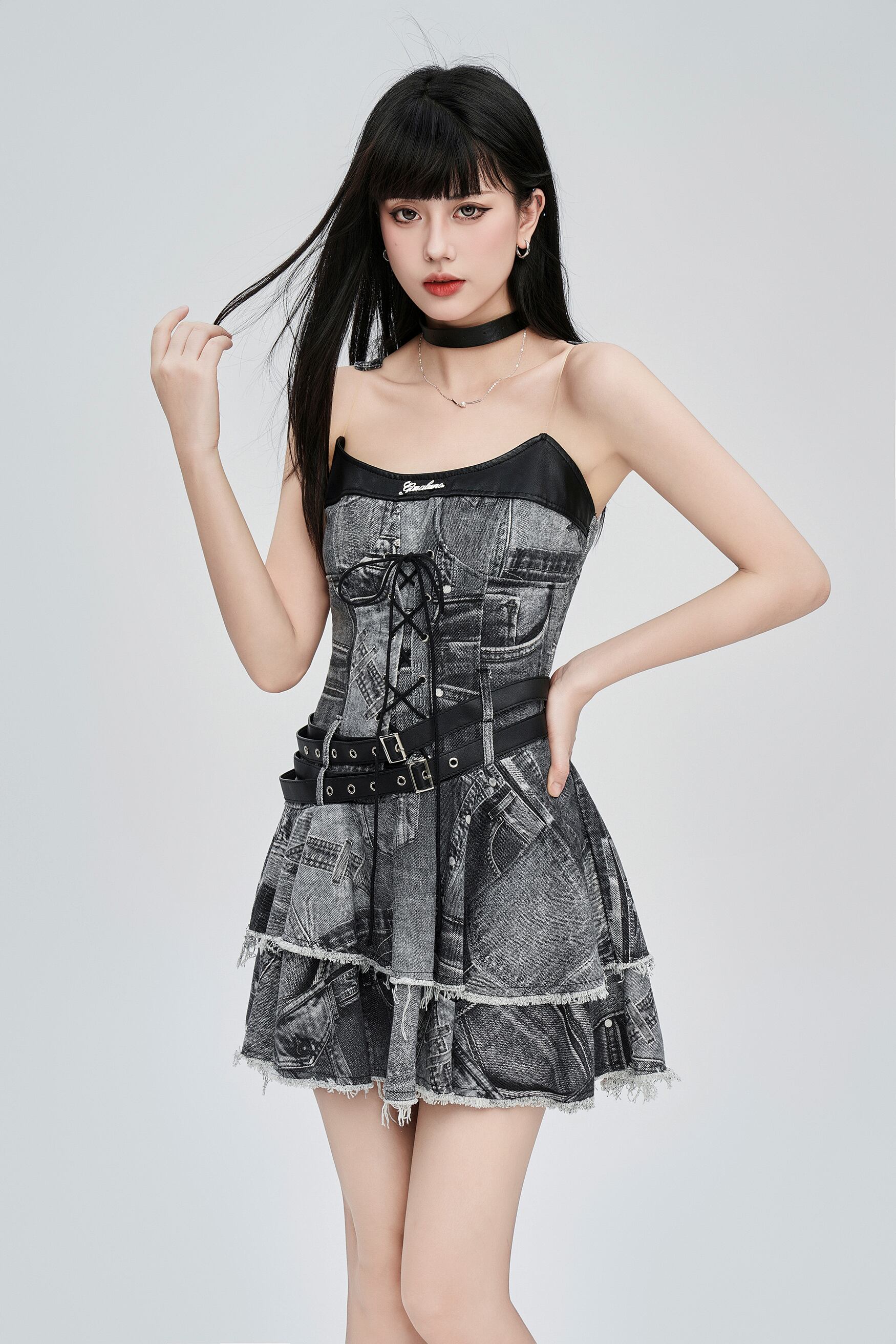 ワンピース キャミソール ミディアム丈 膝上 袖なし デニム ベルト ストラップレス パッチワーク柄 レースアップ 切り替え ティアードスカート リボン ノースリーブ スリム かわいい 大人可愛い きれいめ 大人 上品 おしゃれ お洒落 大人可愛い 大人女子 こなれ感 ラブリー キュート ガーリー クール セクシー エレガント 主役級 存在感 とろみ感 抜け感 無地 結婚式 二次会 披露宴 10代 20代 30代 40代 レディース 女性用 パーティー イベント 着回し 重ね着 グレー