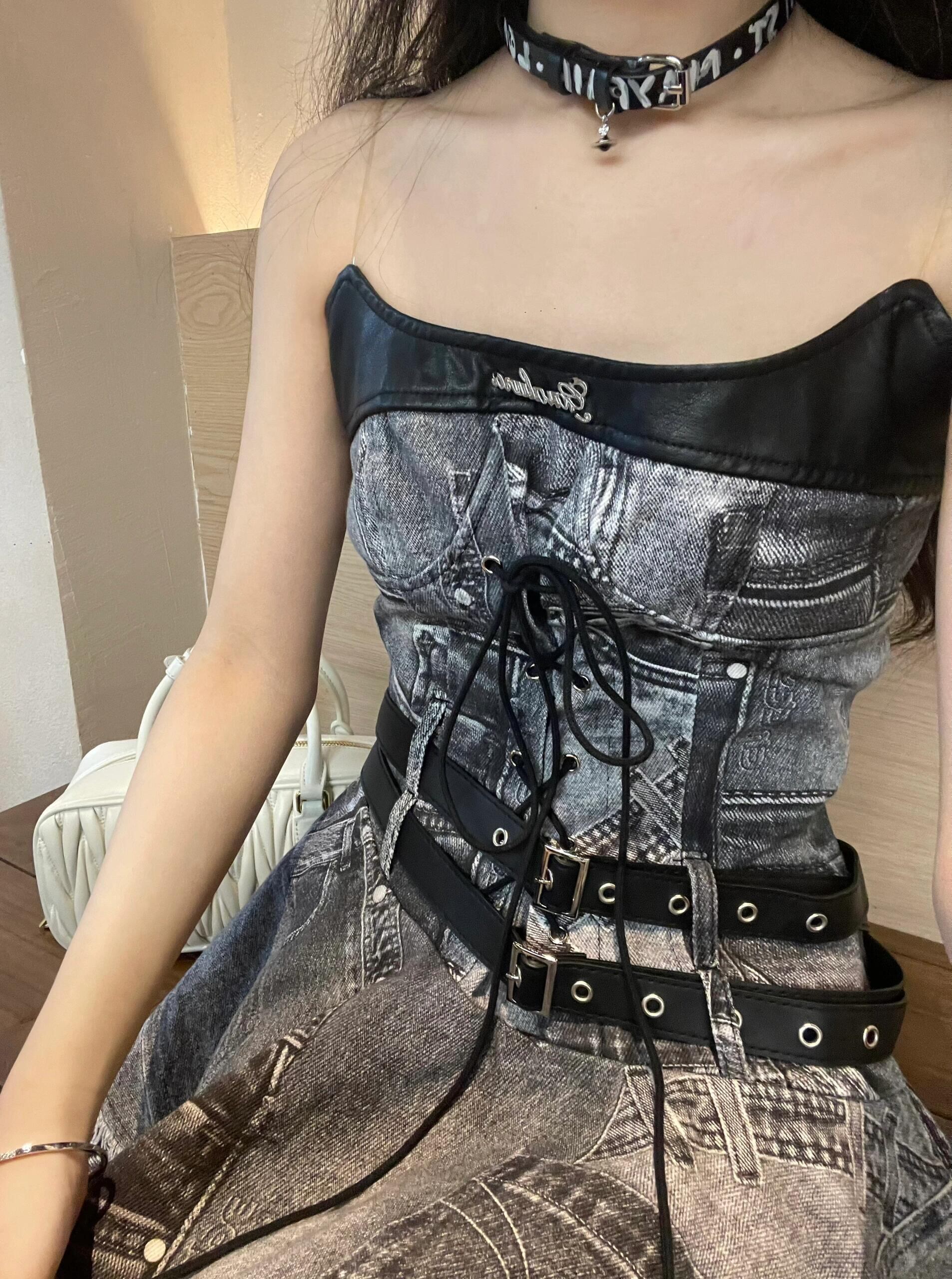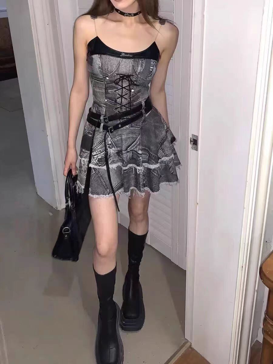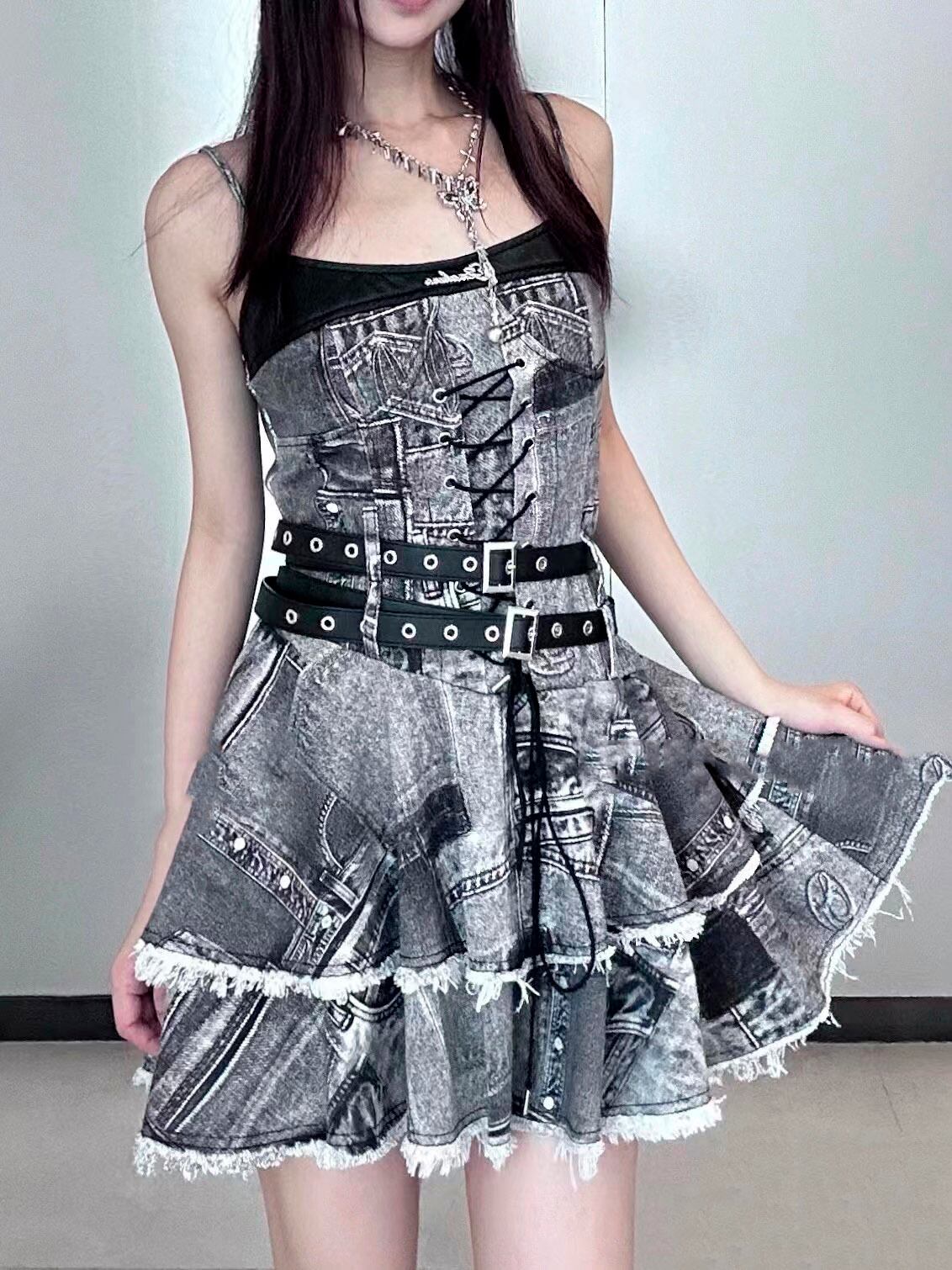 ワンピース キャミソール ミディアム丈 膝上 袖なし デニム ベルト ストラップレス パッチワーク柄 レースアップ 切り替え ティアードスカート リボン ノースリーブ スリム かわいい 大人可愛い きれいめ 大人 上品 おしゃれ お洒落 大人可愛い 大人女子 こなれ感 ラブリー キュート ガーリー クール セクシー エレガント 主役級 存在感 とろみ感 抜け感 無地 結婚式 二次会 披露宴 10代 20代 30代 40代 レディース 女性用 パーティー イベント 着回し 重ね着 グレー