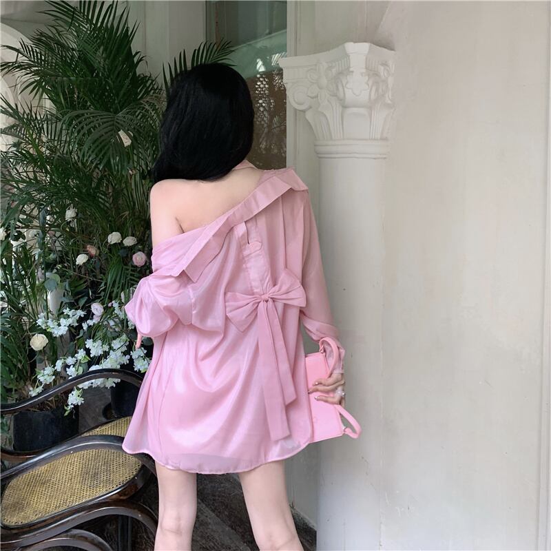 ブラウス トップス デート シャツ 袖あり ブラウス バックコンシャス リボン スリット パフスリーブ シフォン 透け感 シアー 長袖 かわいい 大人可愛い きれいめ シンプル カジュアル 大人 上品 おしゃれ お洒落 主役級 存在感 春 秋 10代 20代 30代 レディース 女性用 OL 学生 デート お出かけ 公園デビュー 女子会 休日 イベント 旅行 着回し 普段使い コーデ 楽ちん モテ インスタ映え S M L XL ホワイト ピンク