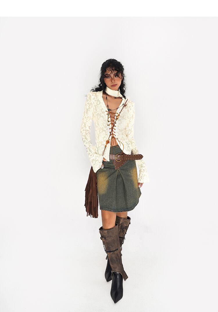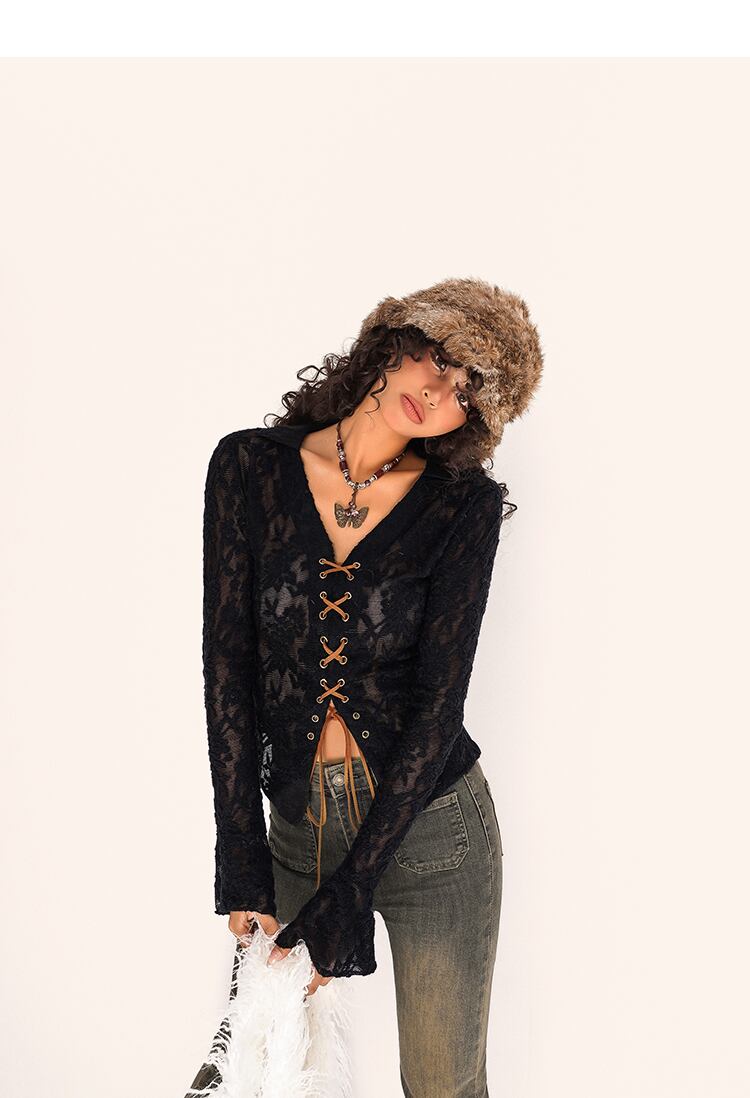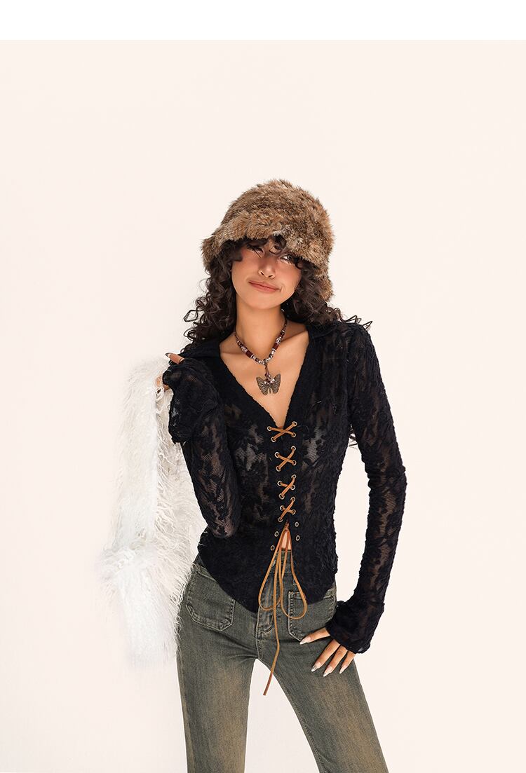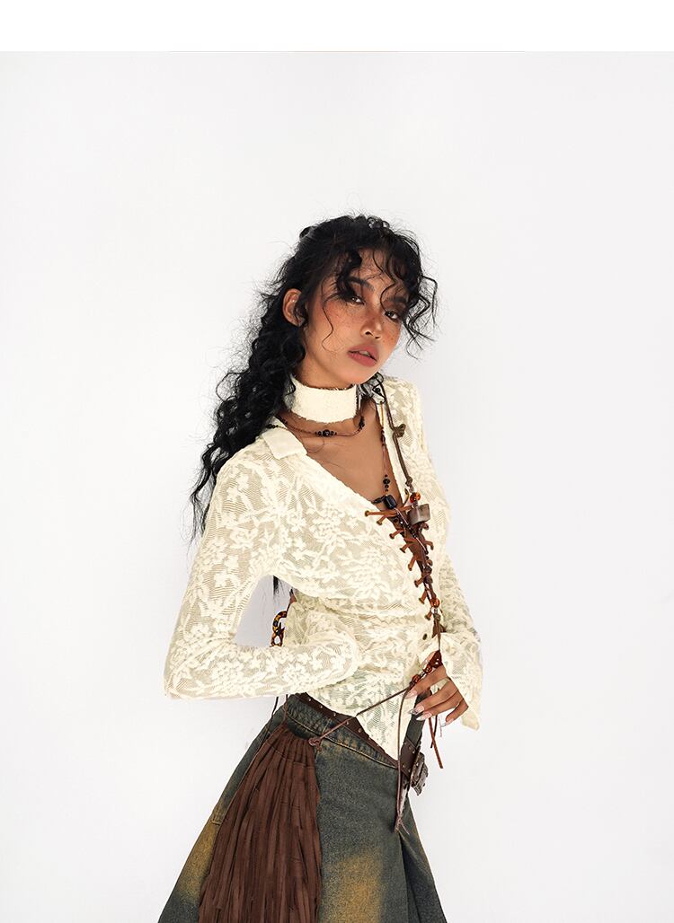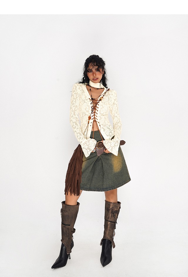 センターのボヘミアンなレースアップがこなれた総レーストップス。