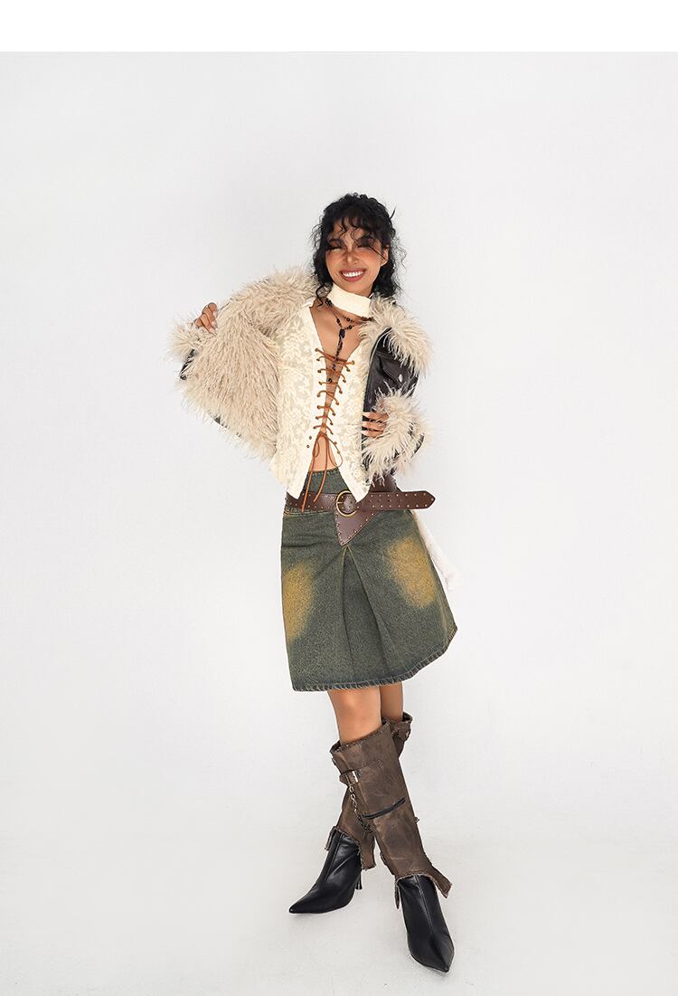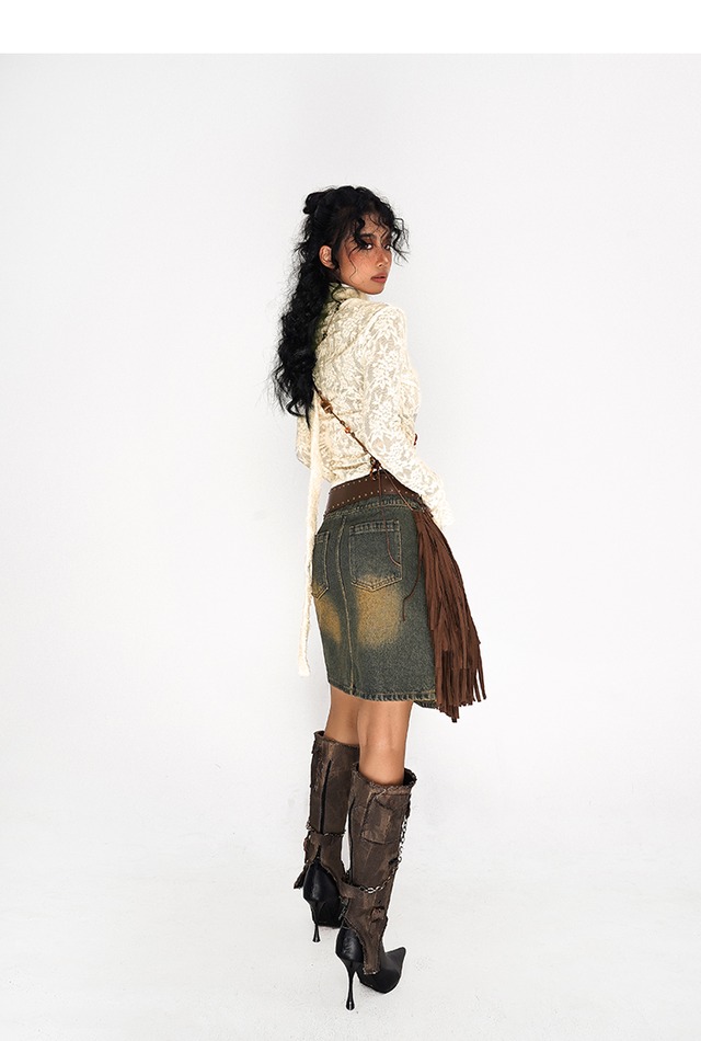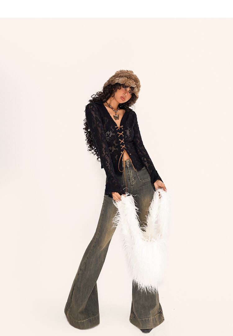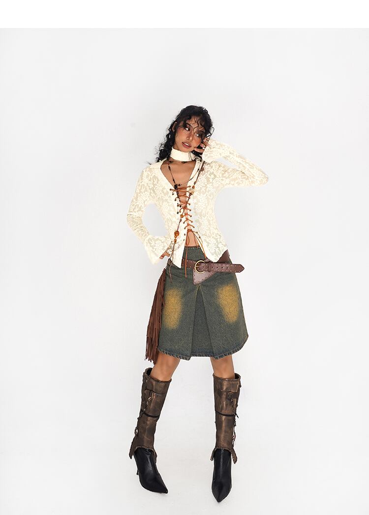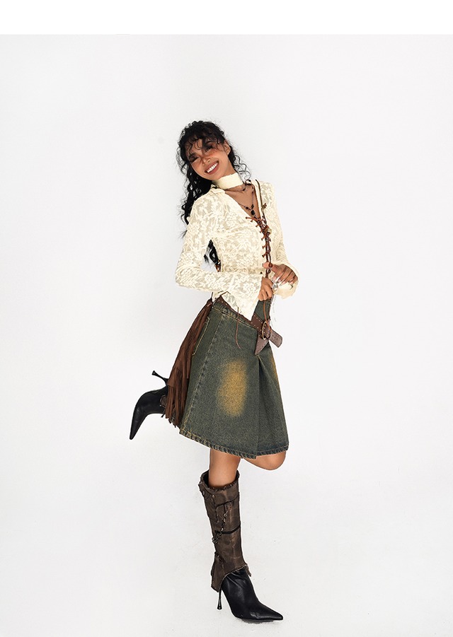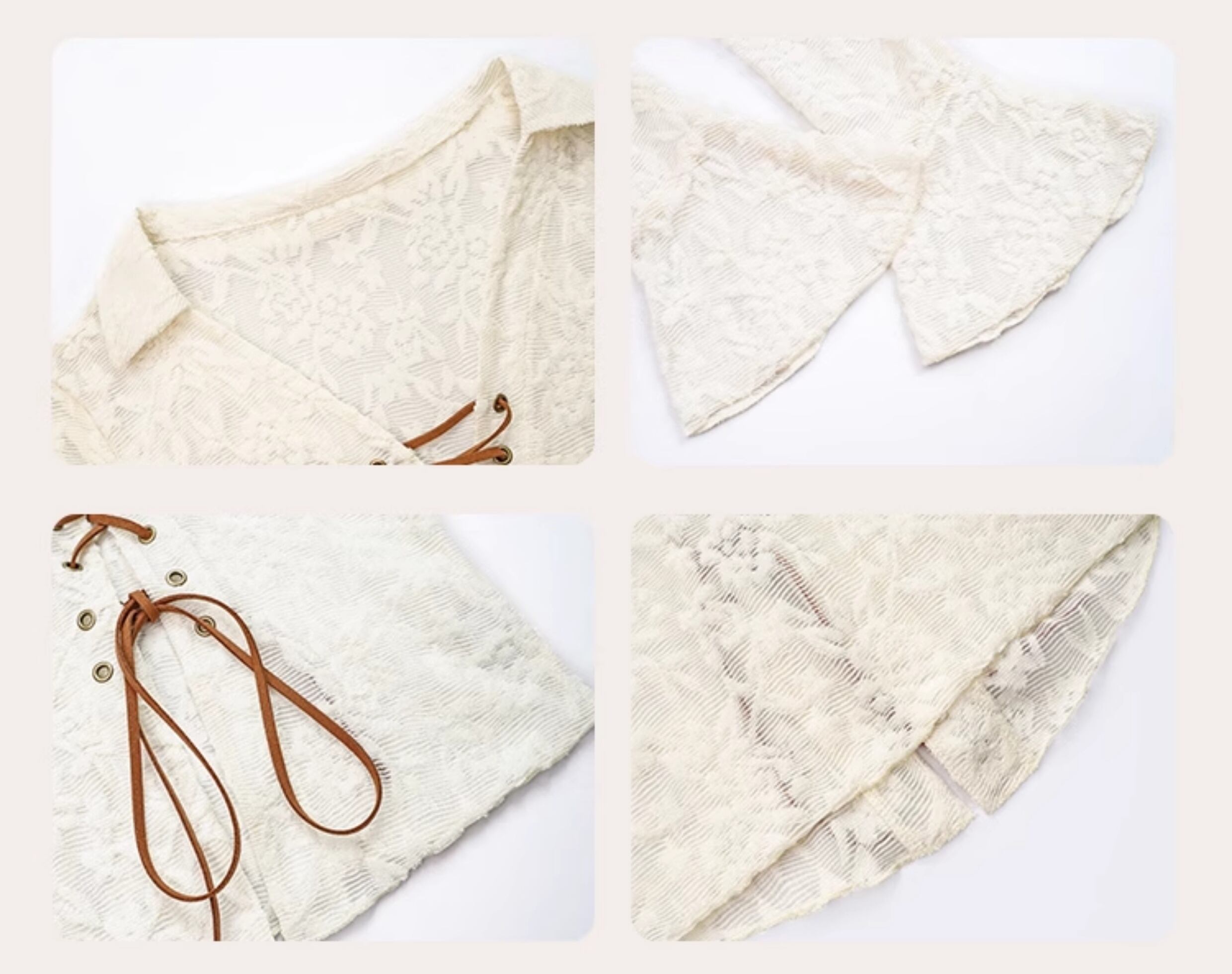 センターのボヘミアンなレースアップがこなれた総レーストップス。
