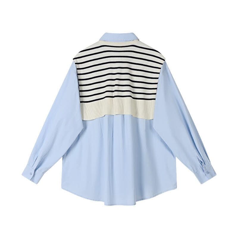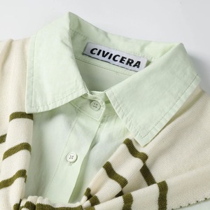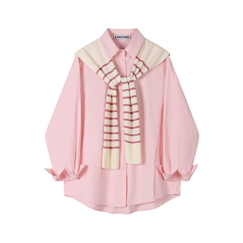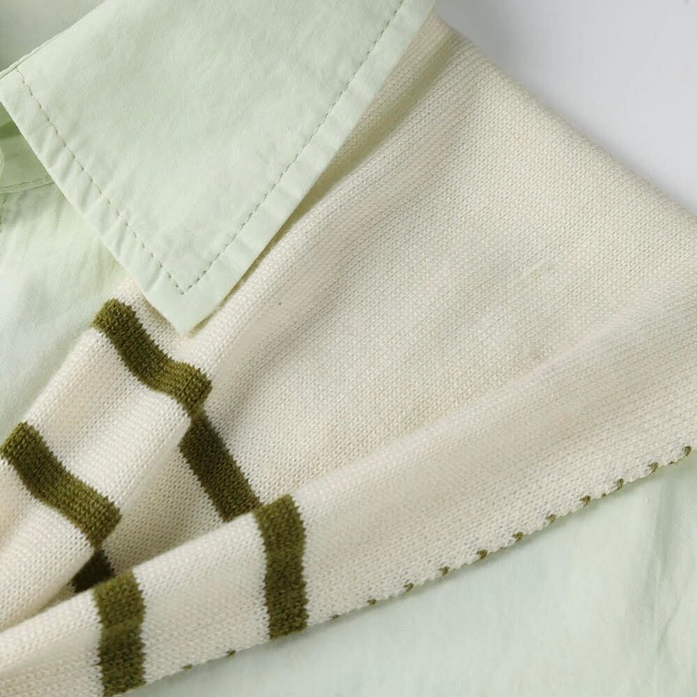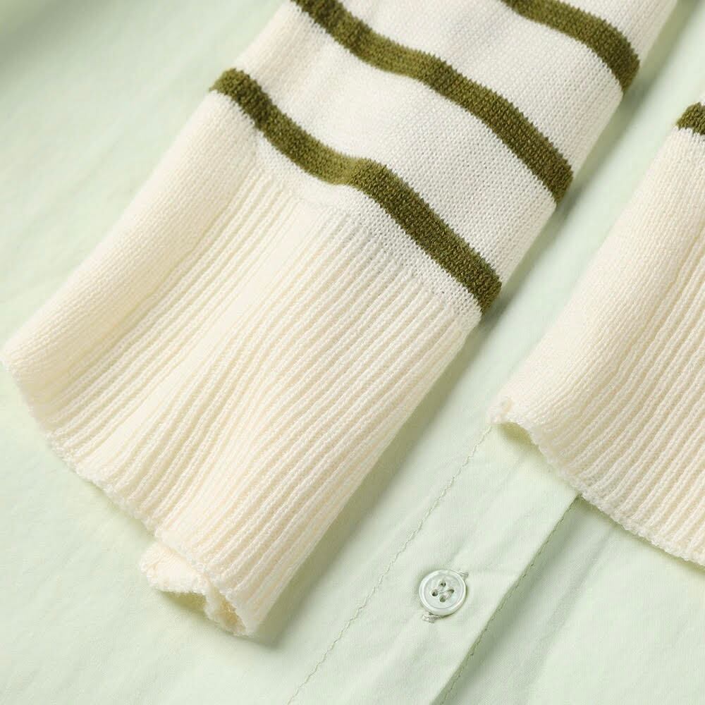 トップス シャツ 長袖 襟付き ポロカラー ボタン 前開き ショール ボーダー柄 2点セット ルーズ ゆったり かわいい きれいめ 大人 上品 おしゃれ お洒落 大人可愛い 大人女子 こなれ感 カジュアル クール モダン シック レトロ フェミニン 主役級 存在感 とろみ感 抜け感 10代 20代 30代 春 レディース 女性用 お出かけ 女子会 デート 旅行 お泊まり ショッピング 休日 普段使い 韓国 韓国系 ファッション トレンド 流行 インスタ映え 美スタイル ワンサイズ グリーン ブルー ピンク