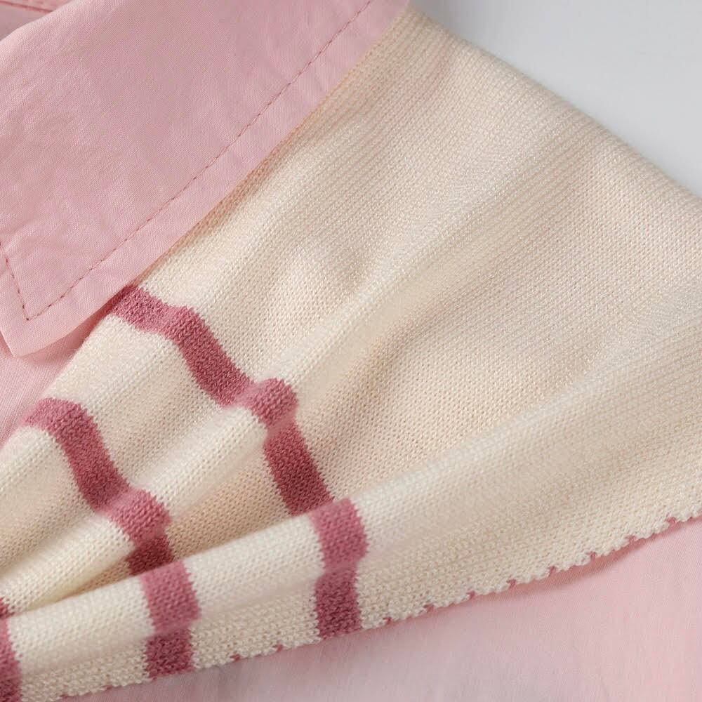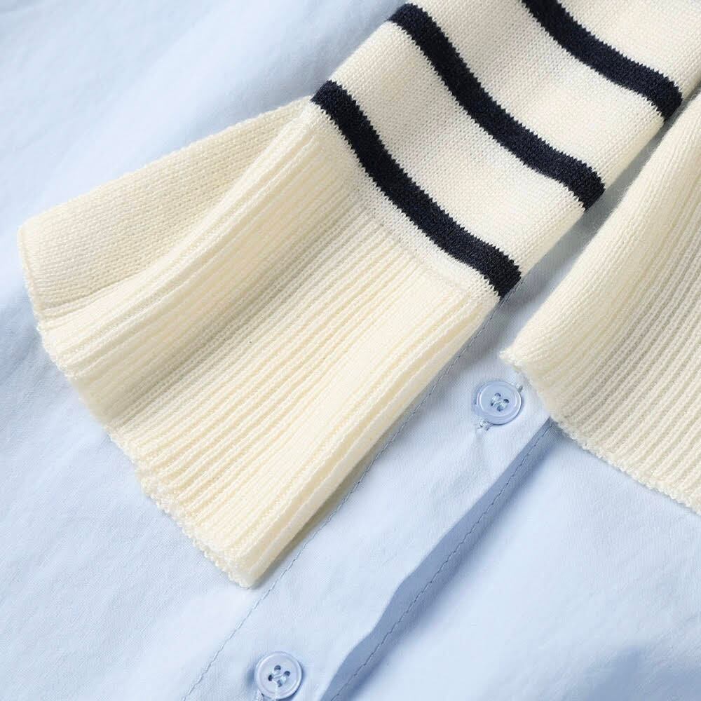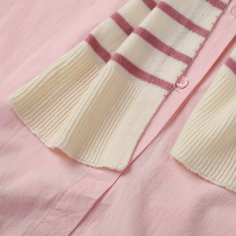トップス シャツ 長袖 襟付き ポロカラー ボタン 前開き ショール ボーダー柄 2点セット ルーズ ゆったり かわいい きれいめ 大人 上品 おしゃれ お洒落 大人可愛い 大人女子 こなれ感 カジュアル クール モダン シック レトロ フェミニン 主役級 存在感 とろみ感 抜け感 10代 20代 30代 春 レディース 女性用 お出かけ 女子会 デート 旅行 お泊まり ショッピング 休日 普段使い 韓国 韓国系 ファッション トレンド 流行 インスタ映え 美スタイル ワンサイズ グリーン ブルー ピンク