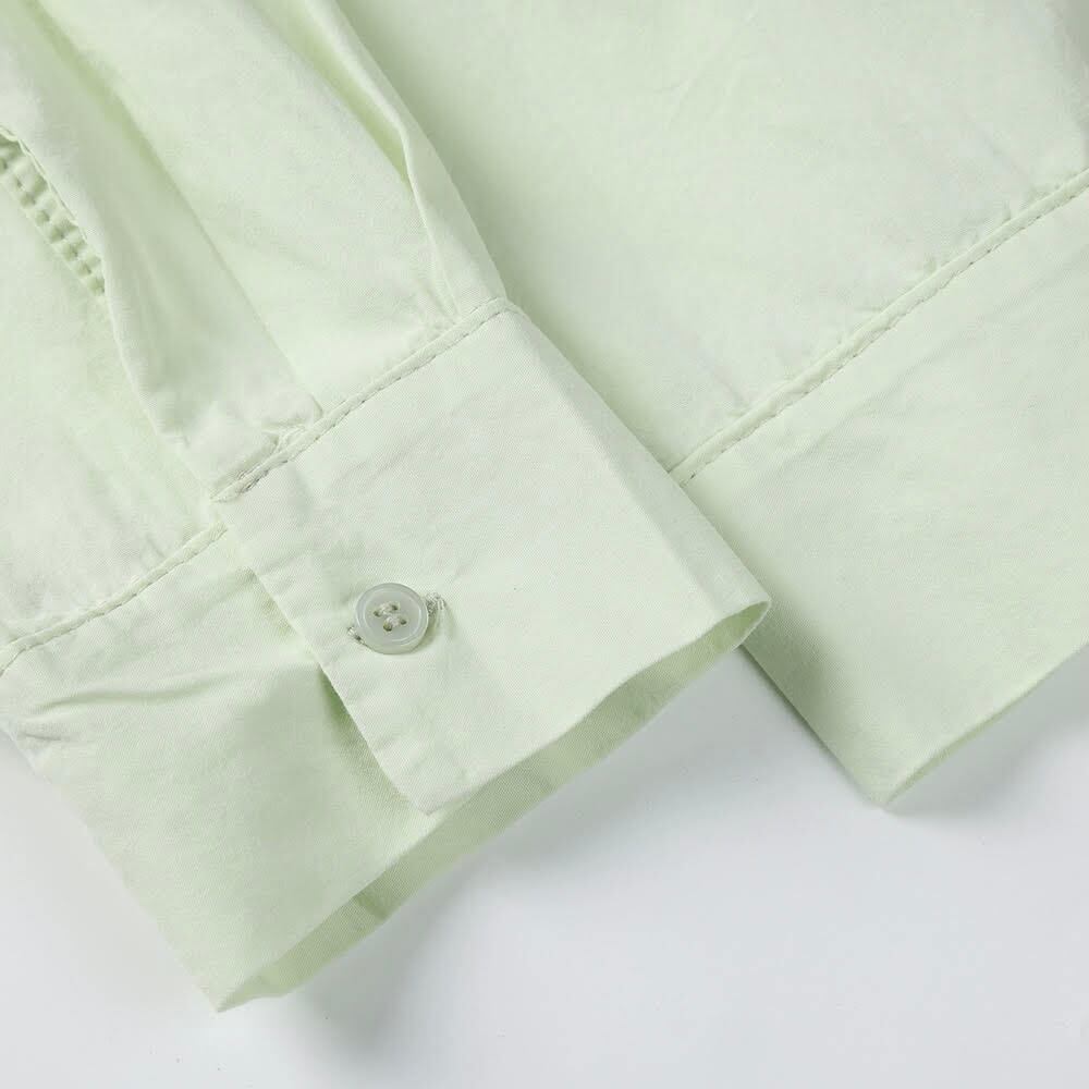 ポロカラーとボタン前開きのデザインが特徴的な長袖シャツです。