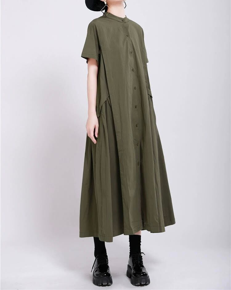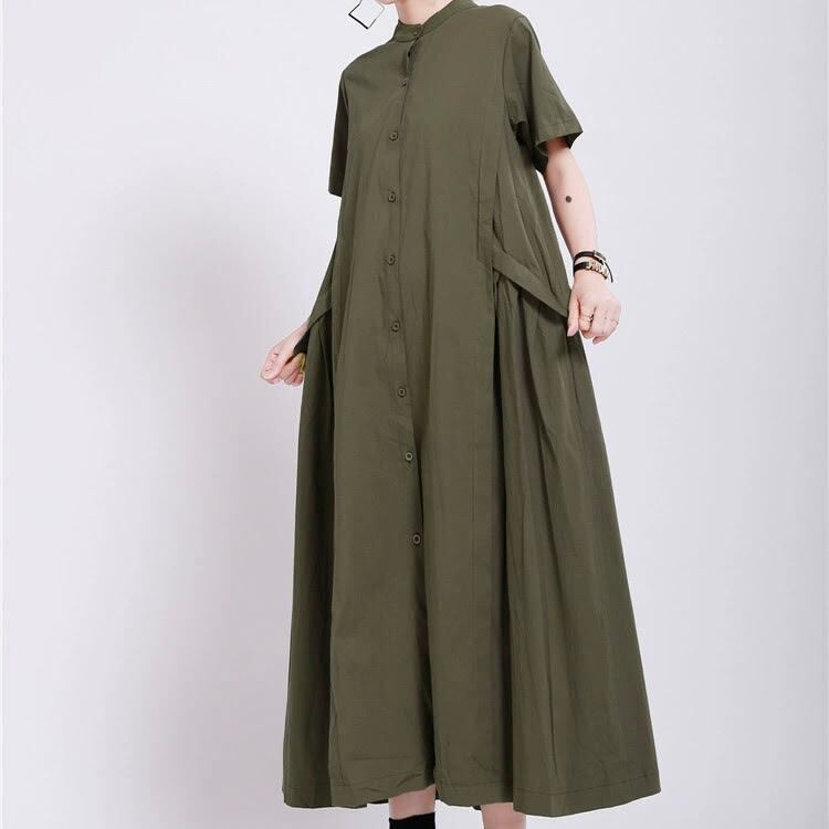 ワンピース 半袖 ロング丈 Aライン ウエストマーク ボタン 前開き 無地 ルーズ ゆったり かわいい 大人可愛い きれいめ 大人 上品 おしゃれ お洒落 大人可愛い 大人女子 こなれ感 シンプル カジュアル クール シック モダン フェミニン エレガント 主役級 存在感 とろみ感 抜け感 20代 30代 夏 レディース 女性用 お出かけ 女子会 デート 旅行 お泊まり 休日 普段使い 韓国 ファッション トレンド 流行 美スタイル インスタ映え 脚長 美脚 ワンサイズ グリーン ブラック ライトカーキ