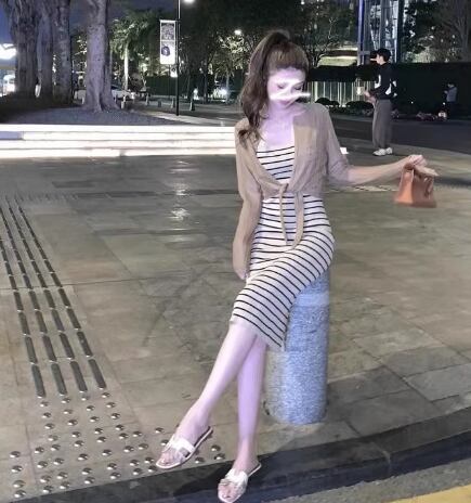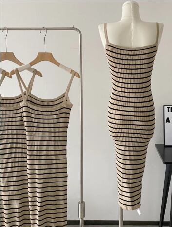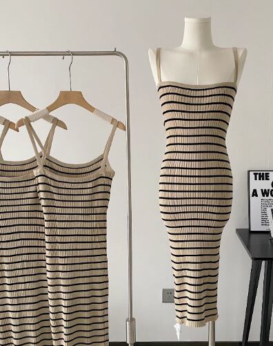レディース 女性用 ワンピース ひざ丈 キャミソールワンピース キャミワンピ 袖なし ノースリーブ スリム タイト 細身 大人可愛い カジュアル シンプル 大人 おしゃれ かっこいい 大人女子 セクシー 主役級 存在感 夏 10代 20代 30代 40代 学生 デート おでかけ 女子会 リゾート 休日 韓国 韓国系 オルチャン ファッション コーデ モテ 美脚 脚長 定番 トレンド インスタ映え XS S M ブラウン ボーダー