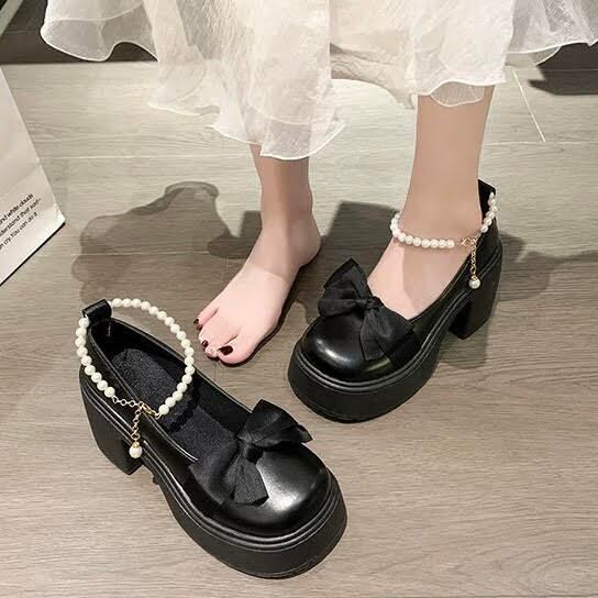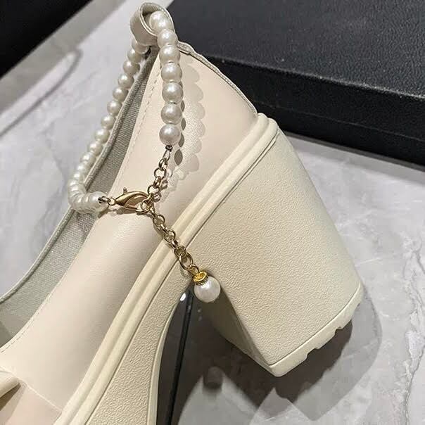 リボンとパールの装飾が上品さをプラスし、歩きやすさも追求した一足です。