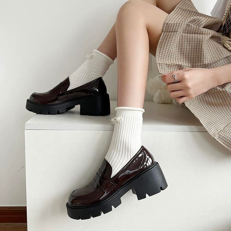 ローファー 厚底ローファー 通学シューズ カジュアルシューズ 厚底 光沢 ラウンドトゥ 履きやすい 歩きやすい 脱ぎやすい 可愛い 大人可愛い きれいめ 大人 上品 おしゃれ お洒落 かっこいい レトロ カジュアル 存在感 主役級 きちんと感 マニッシュ 無地 春 夏 秋 冬 オールシーズン 10代 20代 レディース 女性用 学生 通学 お出かけ 女子会 デート レストラン ショッピング 休日 普段使い デイリー 韓国 オルチャン スタイルアップ スタイル 高見え 格上げ 黒 ブラック 茶色 ブラウン